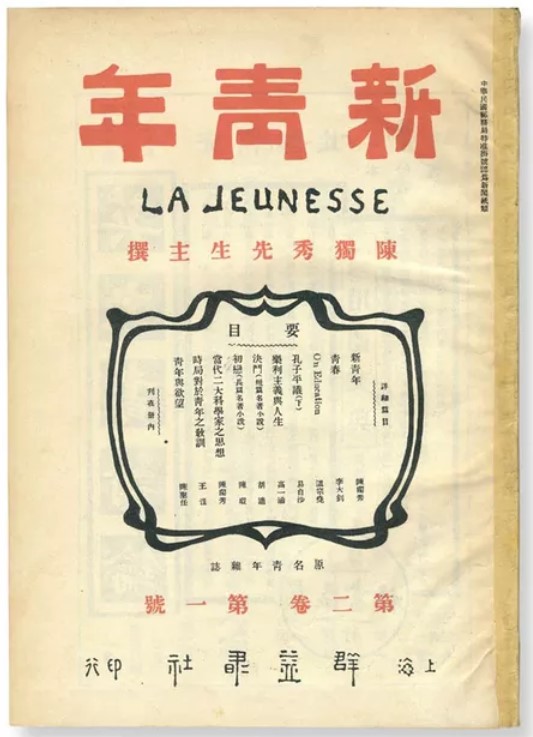 1915年9月,陈独秀在上海创办《青年杂志》,后改名《新青年》,新文化运动由此发端。新文化运动的基本口号是拥护“德先生”( Democracy)和“赛先生”( Science),也就是提倡民主和科学。俄国十月革命给中国送来了马克思列宁主义,中国出现了一批具有初步共产主义思想的知识分子。