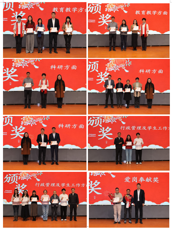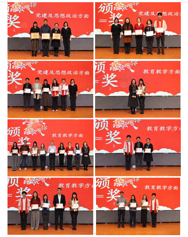 表彰结束后,新春茶话会精彩上演。全体教职工欢聚一堂,共同挥手告别擎满收获的2025,在欢声笑语中迎接充满希望的2026。皇冠博彩公司 领导班子为党建思政、教育教、科学研究、行政服务及学生工作各类获奖的教师颁发了荣誉证书。