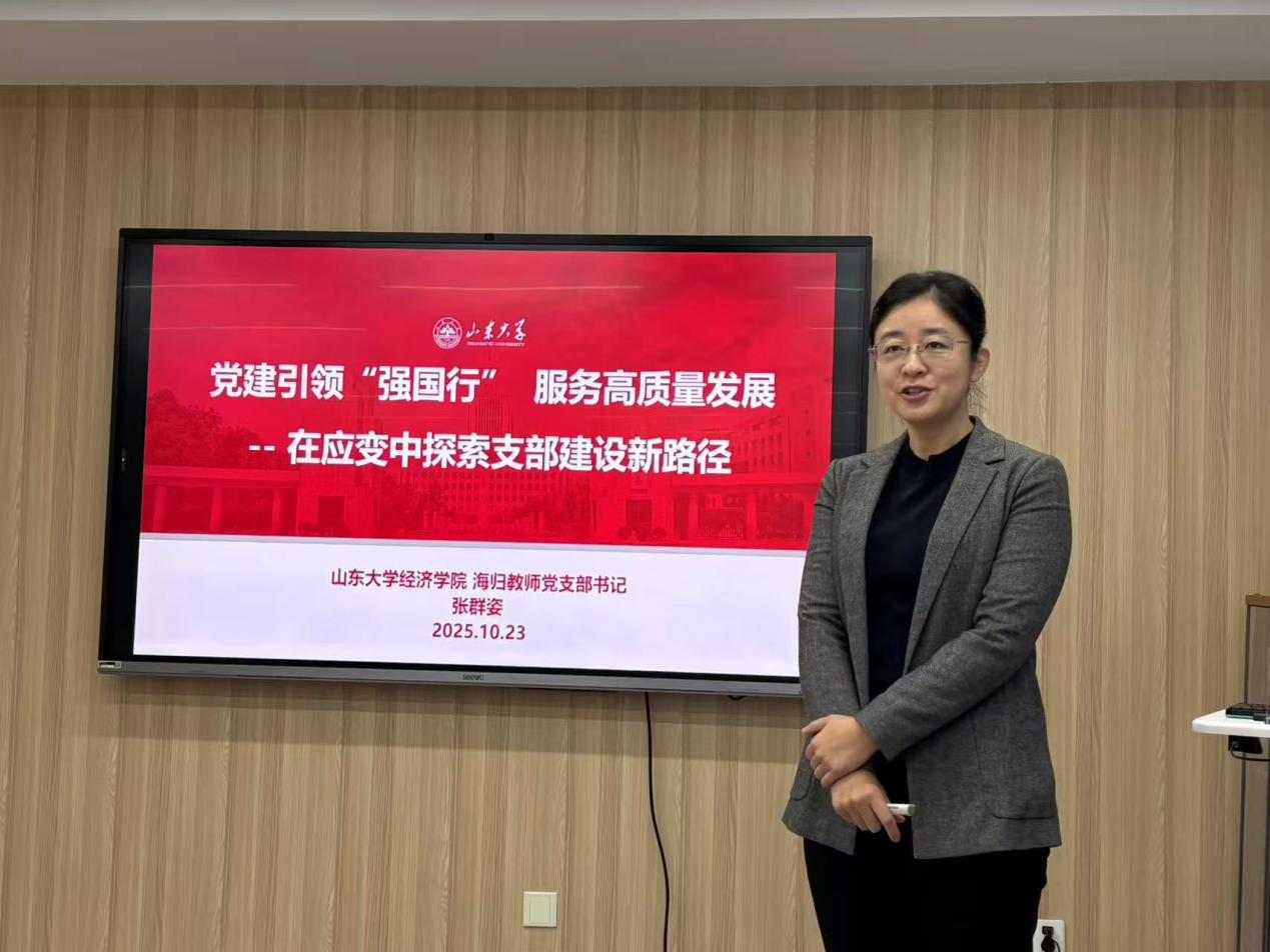 张群姿教授以“党建引领‘强国行’服务高质量发展--在应变中探索支部建设新路径”为题,系统讲述了如何实现党建引领学科高质量发展。结合山东大学经济皇冠博彩公司 海归教师党支部的具体实践,从以下三个方面展开交流:在全面深入学习方面,提出支部的“三位一体”学习模式。在聚焦问题精准调研方面,强调精准施策促进党建工作高质量发展。在党建引领促进发展方面,打造全国性党建标杆品牌“中国金融湖畔论坛”。