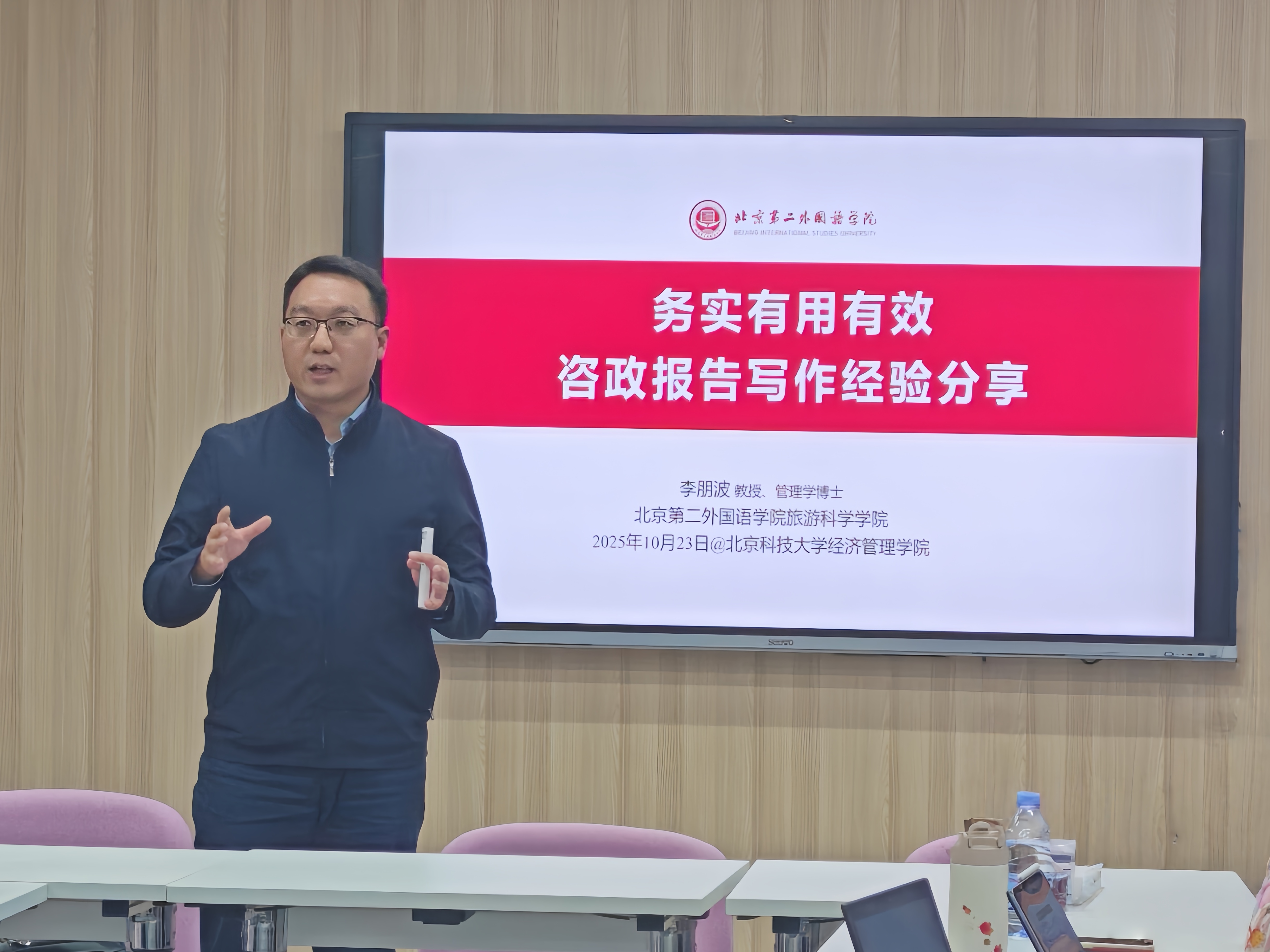 为进一步提升教师与研究生的科研成果转化能力,增强咨政报告撰写的规范性与针对性,皇冠博彩公司-皇冠博彩网址 工商管理系于2025年10月23日举办“咨政报告写作经验分享”学术讲座。讲座邀请北京第二外国语大学李朋波教授主讲,皇冠博彩公司 师生共同参加。本次讲座旨在通过专家分享咨政研究与报告撰写的实践经验,促进教师与学生在政策研究、成果转化和社会服务方面的能力提升。